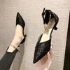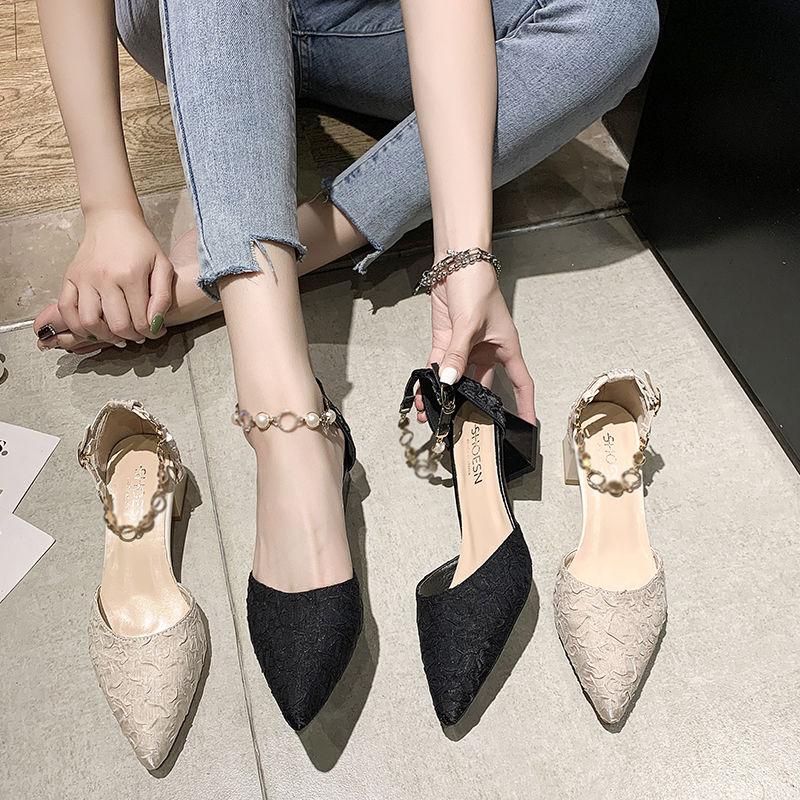 Модные женские сандалии Baotou Red Net, весенние новые туфли с острым носком на толстом каблуке и небольшими ароматами на среднем и высоком каблуке