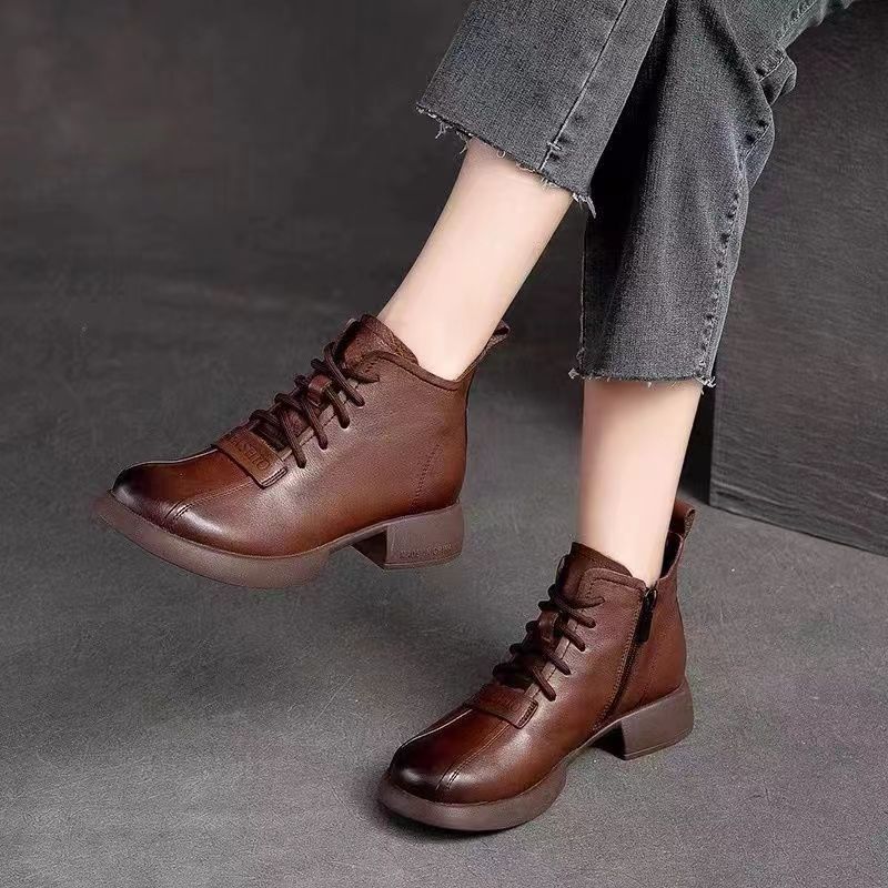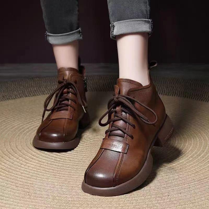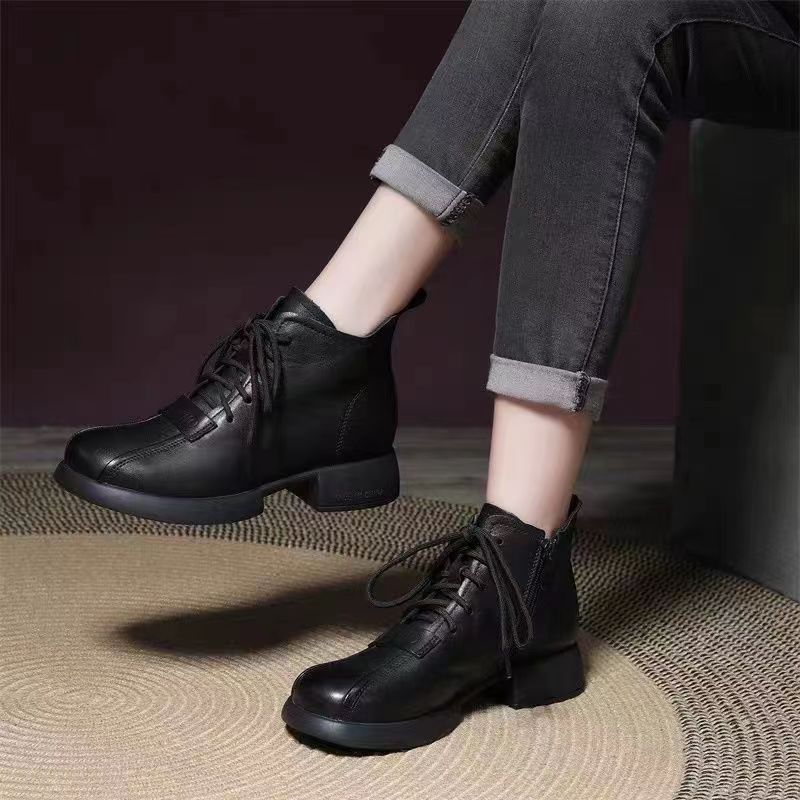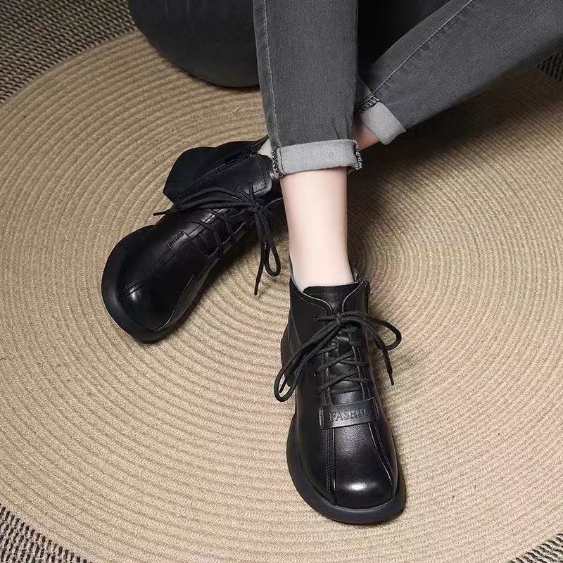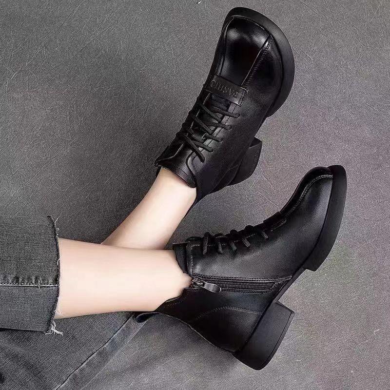 Модные европейские и американские высокие короткие ботинки на шнуровке для женщин 2024 года, новые удобные короткие ботинки на толстой подошве для женщин Trafza