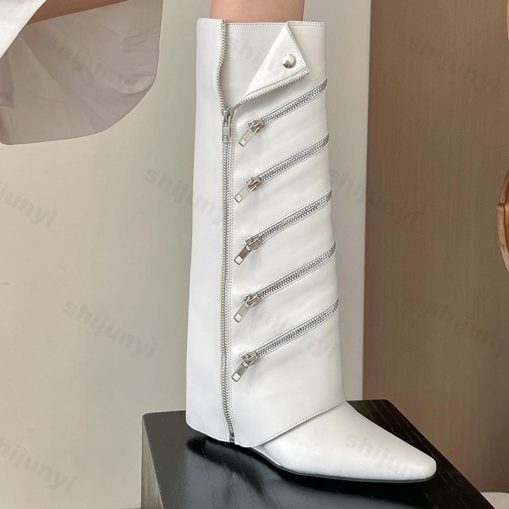 Модные дизайнерские сапоги на молнии до колена для женщин, новинка 2024 года, модные сапоги с острым носком, высокие сапоги-трубы, длинные сапоги для женщин, осень-зима, женские брюки