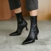 Модные короткие сапоги женские на высоком каблуке осень и зима 2024 г. Новые тонкие каблуки темпераментные застежка-молния заостренные эластичные тонкие сапоги женские