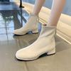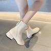 Мода 2024 года, зима, новая модная кожаная верхняя одежда с круглым носком и молнией сзади, высокий каблук для теплых и удобных больших размеров голых ботинок