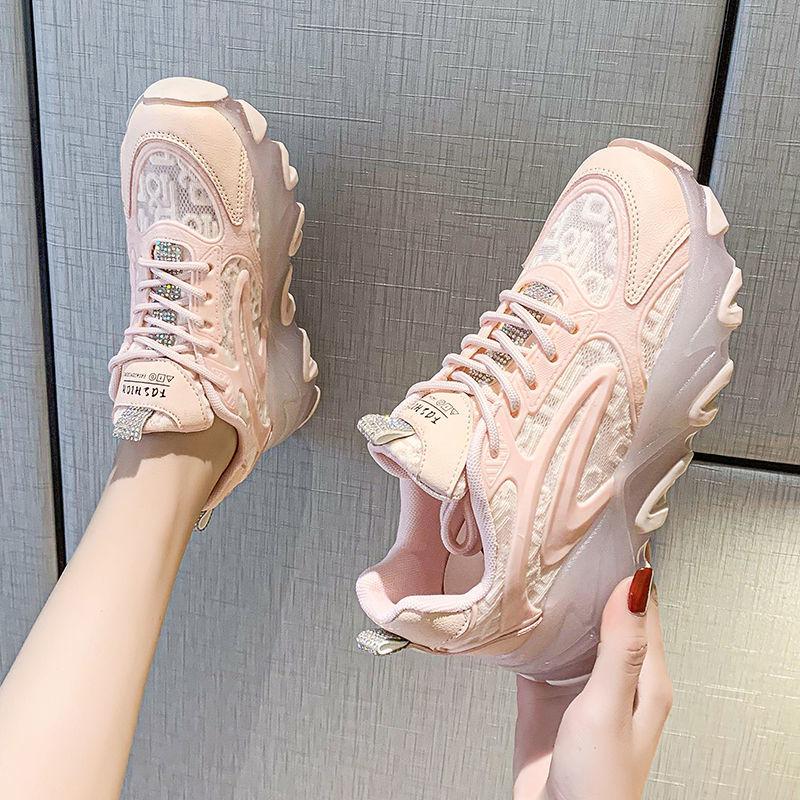 Модные сетчатые дышащие женские туфли на шнуровке розового цвета для бега, женская обувь из хлопка для ходьбы, лето 2024, модная роскошная осень, новинка в обуви