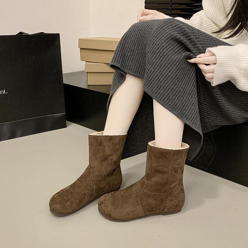 Модные женские ботинки на низком каблуке, замшевые ботильоны с рукавами, теплые удобные прогулочные туфли для женщин 2024 года, зимняя короткая женская обувь