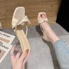 Модные сексуальные удобные туфли на высоком каблуке со стразами для женщин на толстом каблуке 2024 года, новые летние туфли с открытым квадратным носком для женщин