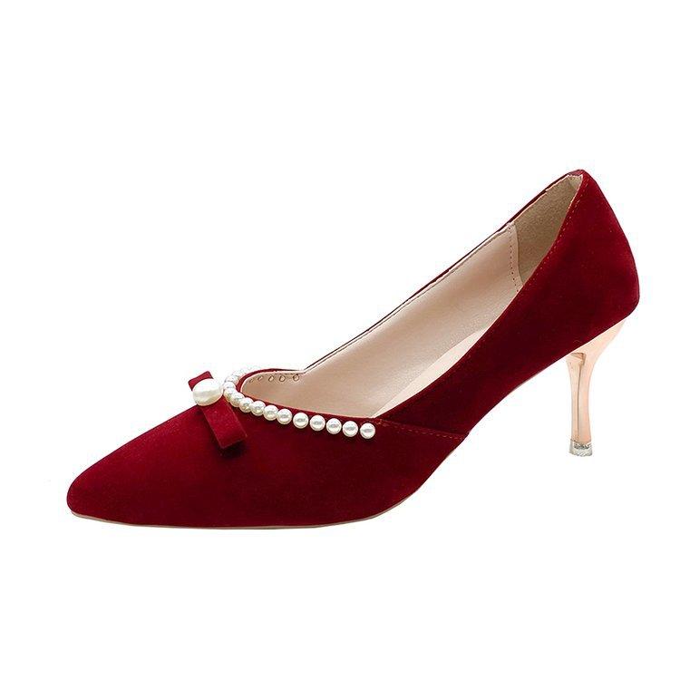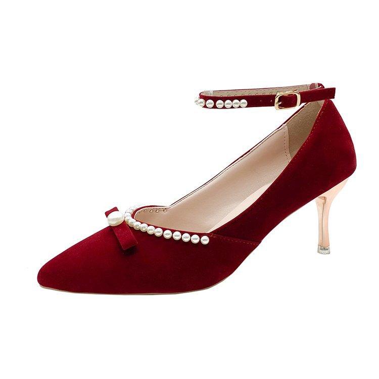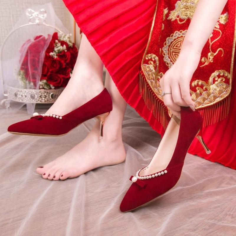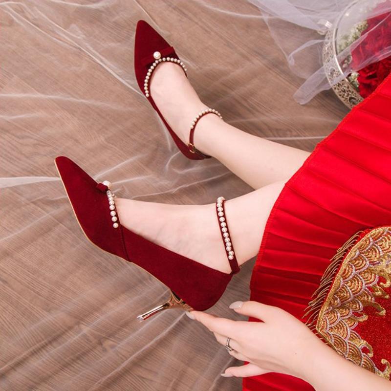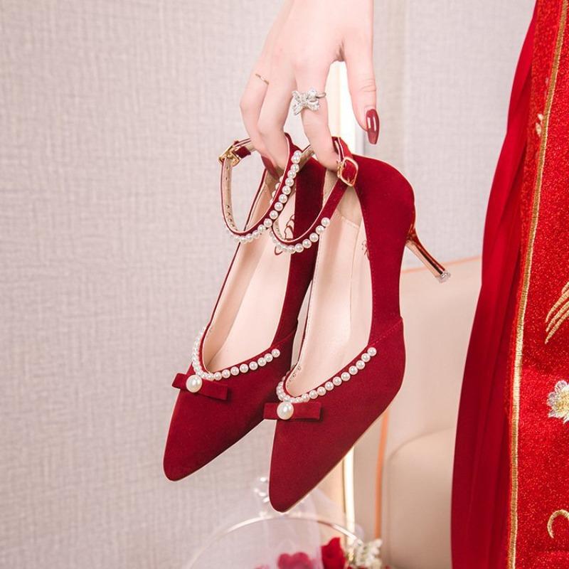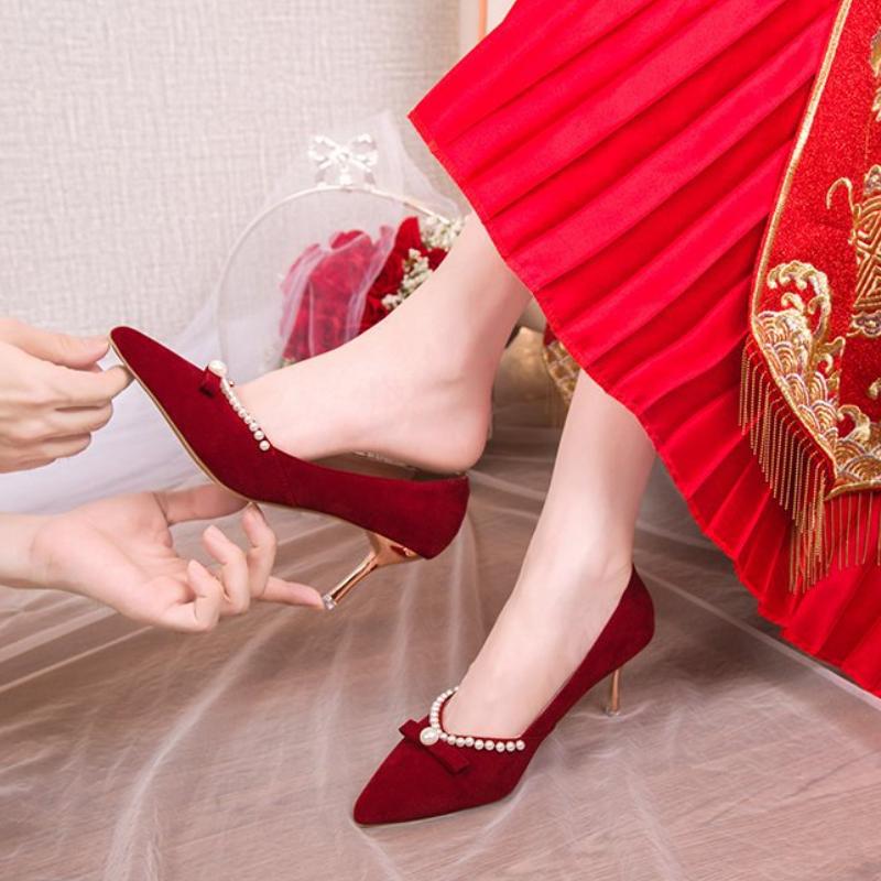 Модные роскошные туфли на высоком каблуке для женщин 2024 года, осень, новые красные свадебные туфли, свадебные туфли с жемчужным украшением, женские туфли Zapatos De Mujer Traf
