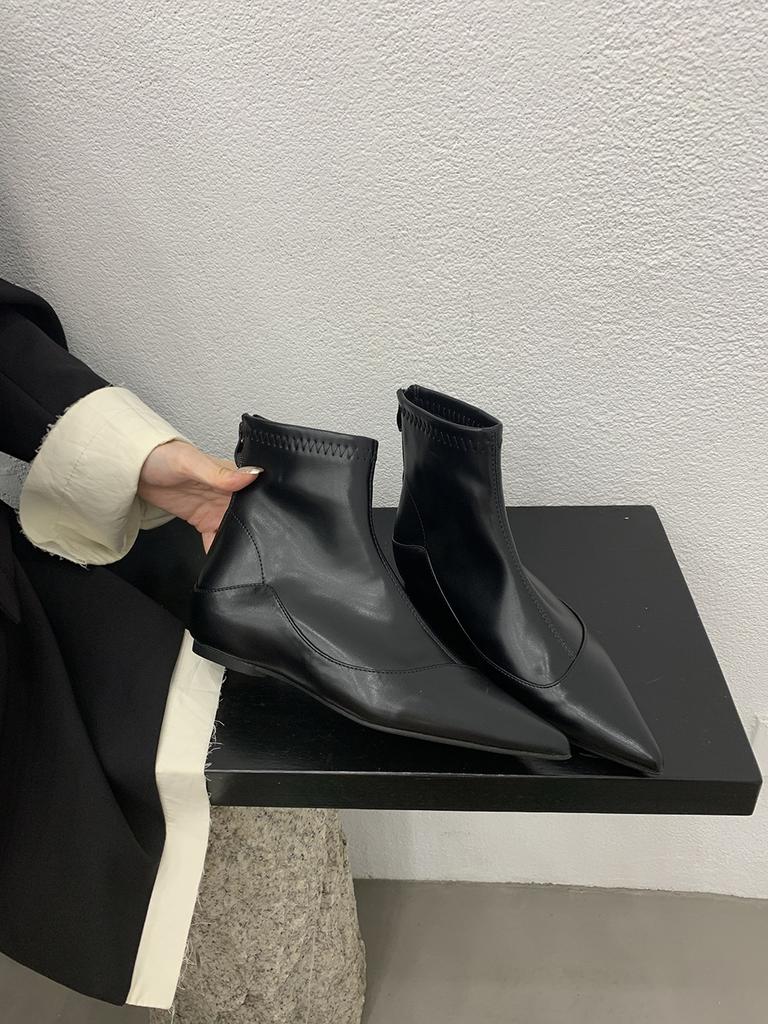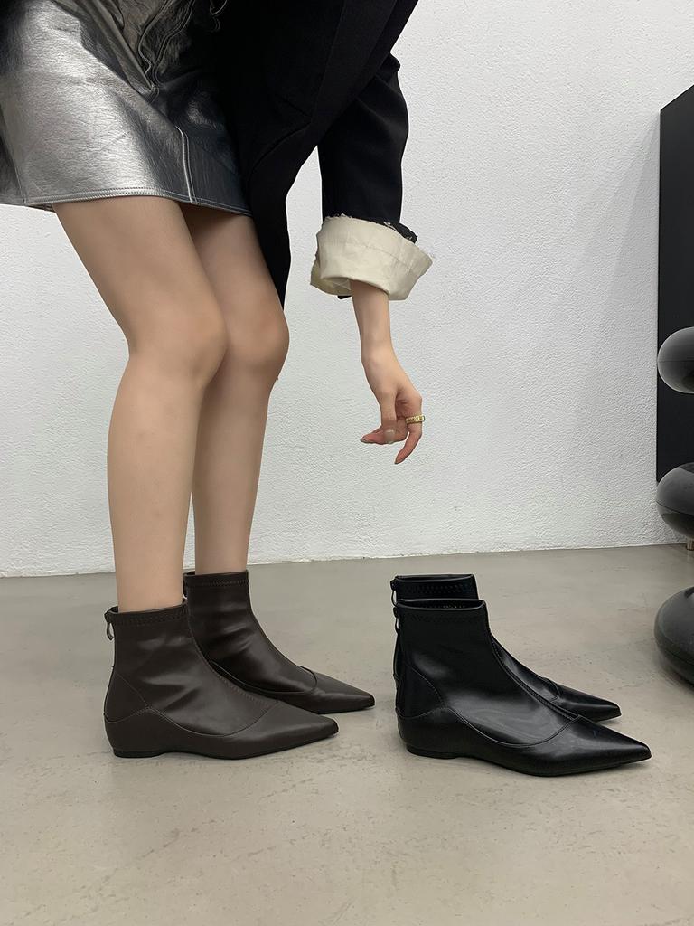 Модные женские сапоги с острым носком, женские сапоги на танкетке с застежкой-молнией сзади, эластичные сапоги для женщин, модное платье, низкий каблук, размер 35-39, короткие сапоги