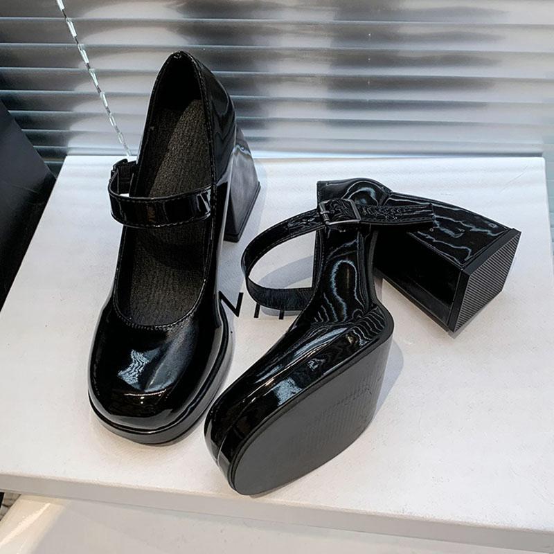 Модные туфли на платформе, женские элегантные туфли Мэри Джейн на квадратном каблуке, женские туфли с пряжкой на щиколотке, женские туфли в стиле Лолиты 2024