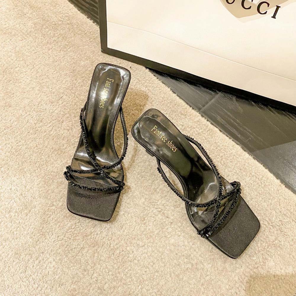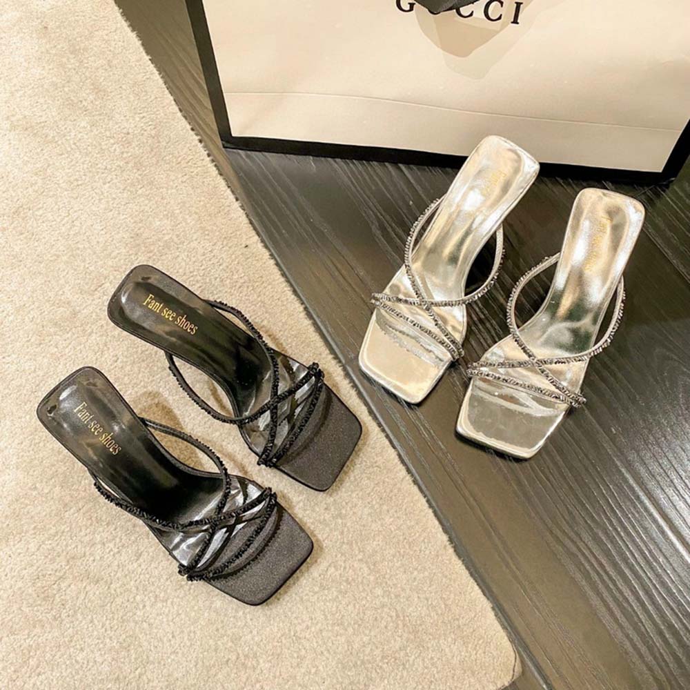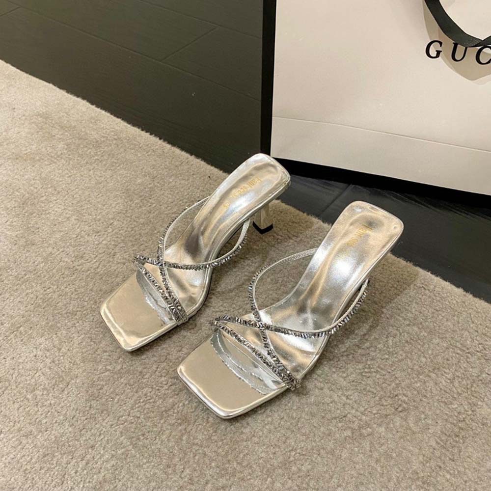 Мода Мода Женские Шлепанцы Шлепанцы Черные Серебристые Вечерние Туфли Тонкий Высокий Каблук 2024 Новинки Свадебная Обувь Женский Размер 35-39 Сексуальные
