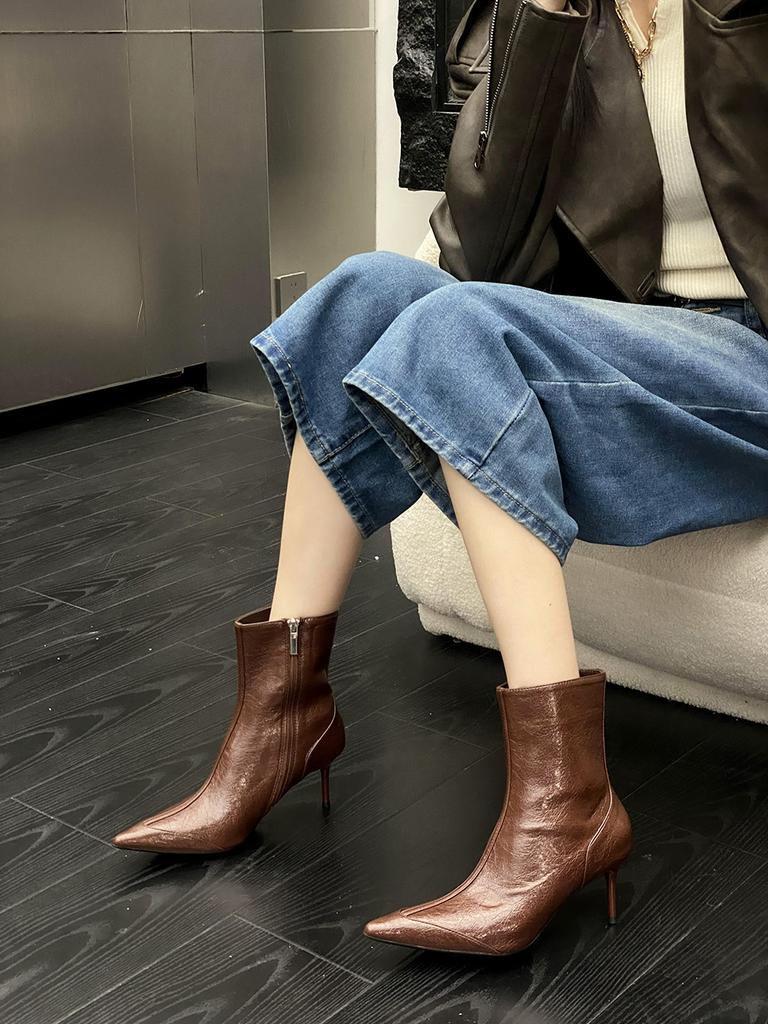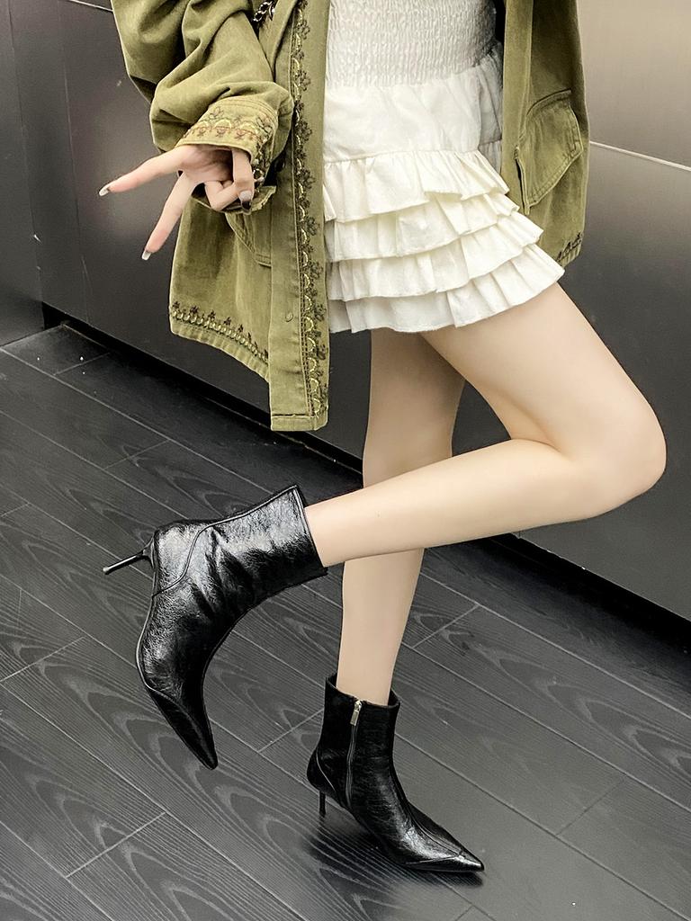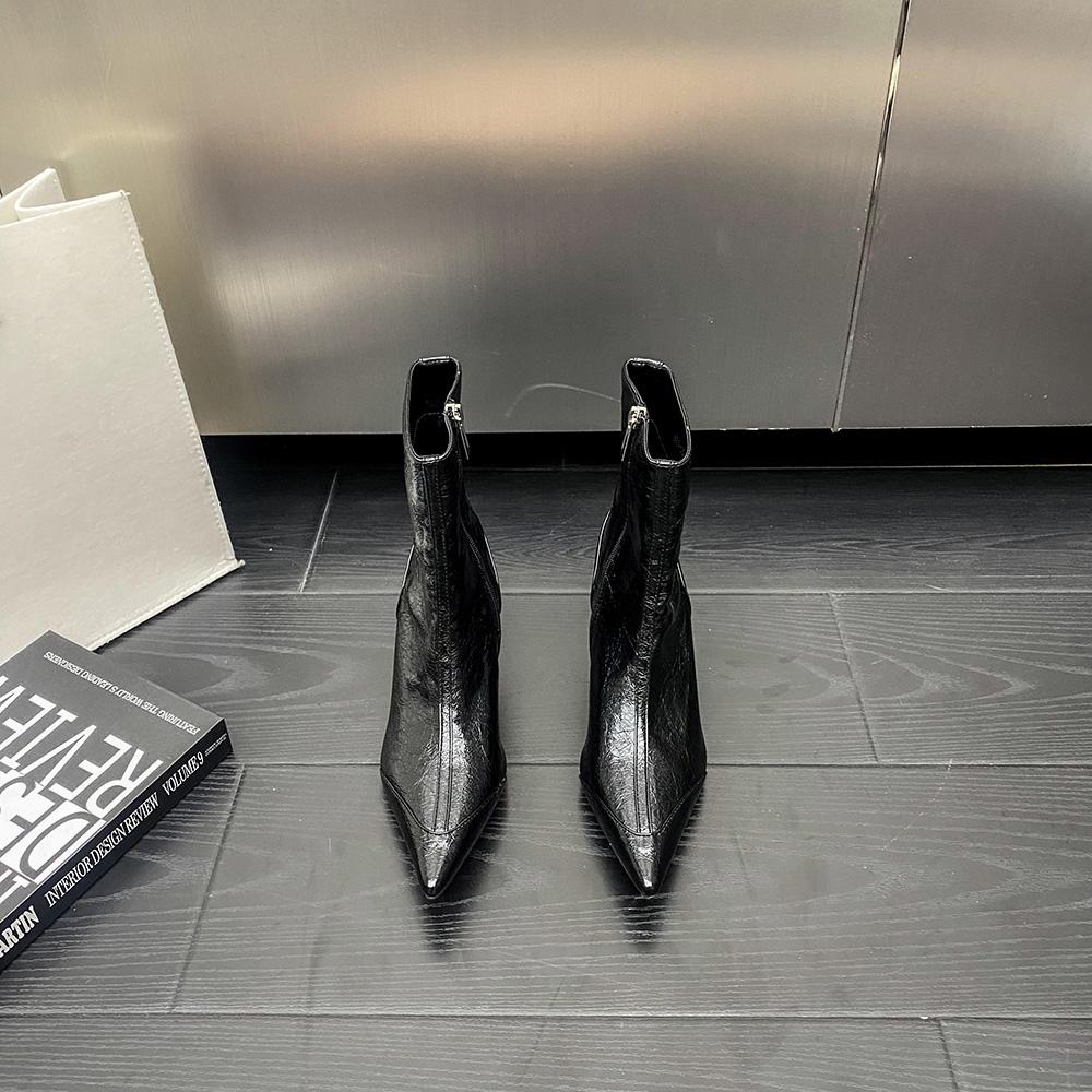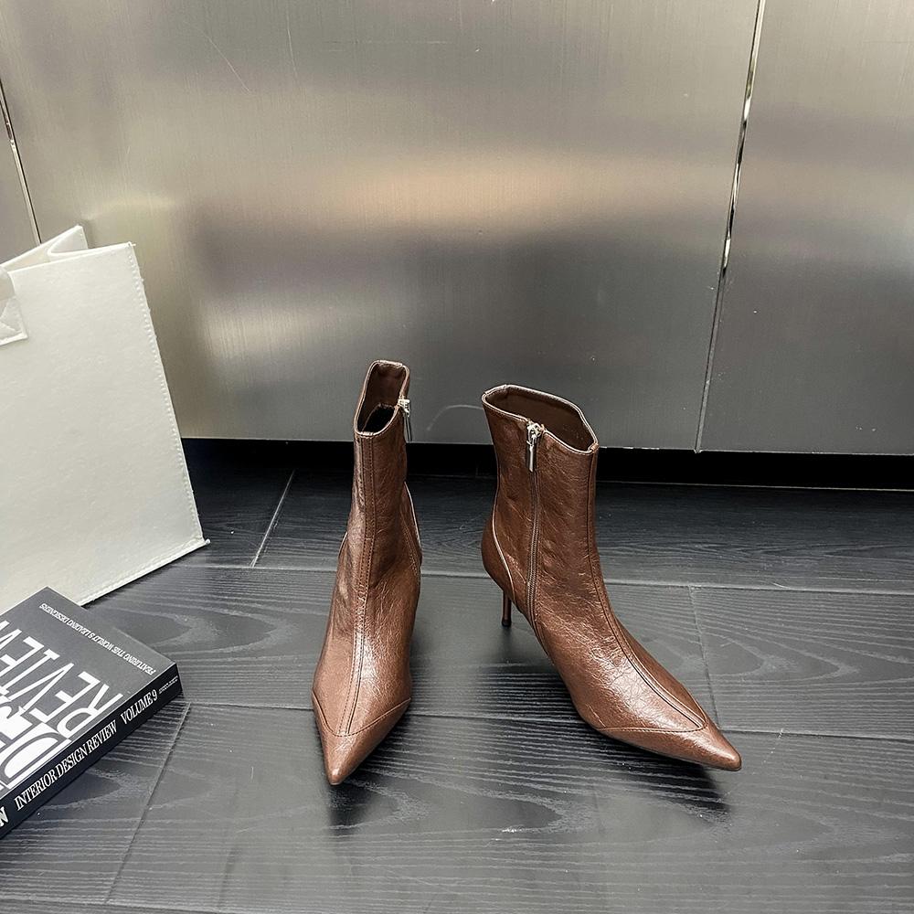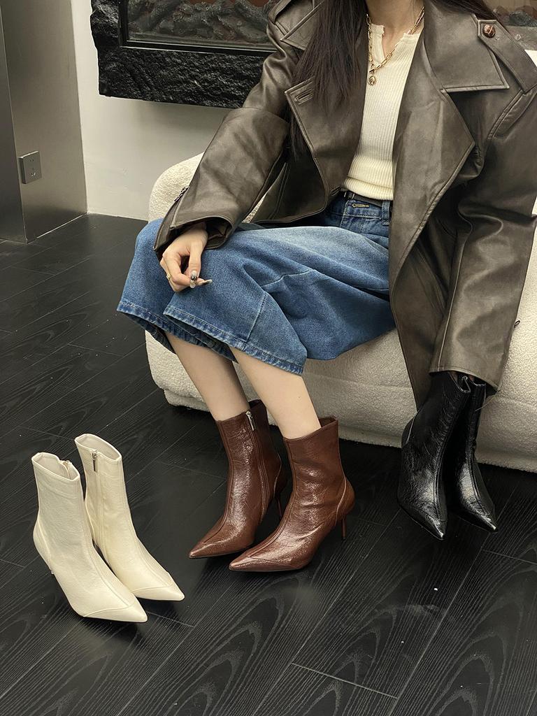 Модные женские ботильоны с острым носком, черные, коричневые, белые, 2024 г. Новые поступления, черные, бежевые, коричневые, туфли-лодочки для вечеринок, зимние ботинки с застежкой-молнией сзади
