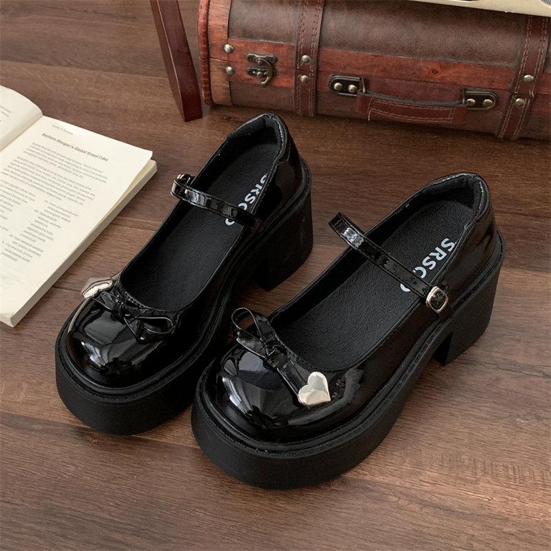 Модные новые однотонные туфли в стиле Лолиты с бантом, женские туфли Мэри Джейн на толстом каблуке, женские элегантные туфли-лодочки для вечернего платья на платформе