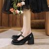Модные французские туфли Мэри Джейн Little из кожи 2024 года, весна, новые туфли на высоком каблуке, универсальные, нежные, для колледжа, с мелким горлом, женские, одинарные