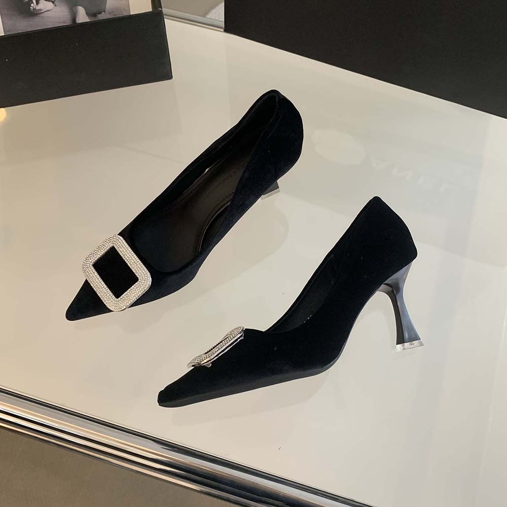 Модные сексуальные туфли-лодочки для вечеринок женские туфли-лодочки на плоской подошве без застежки со стразами туфли на тонком высоком каблуке черные коричневые красные модные офисные туфли женские 35-39