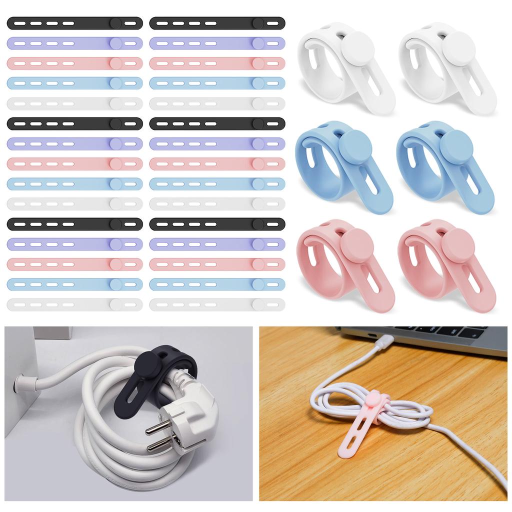 60/30 шт. Силиконовые кабельные стяжки Регулируемые кабельные ремешки Черные/Разноцветные Органайзер для шнуров Многоразовый Органайзер для укладки кабелей Застежка