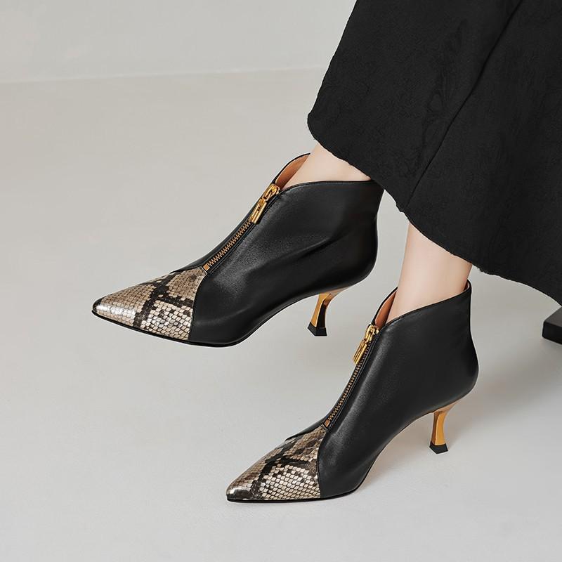 Модные женские ботильоны с острым носком и высоким каблуком, сексуальные серпантинные ботильоны 2024 года, новые дизайнерские ботинки челси с молнией спереди, элегантные женские туфли-лодочки