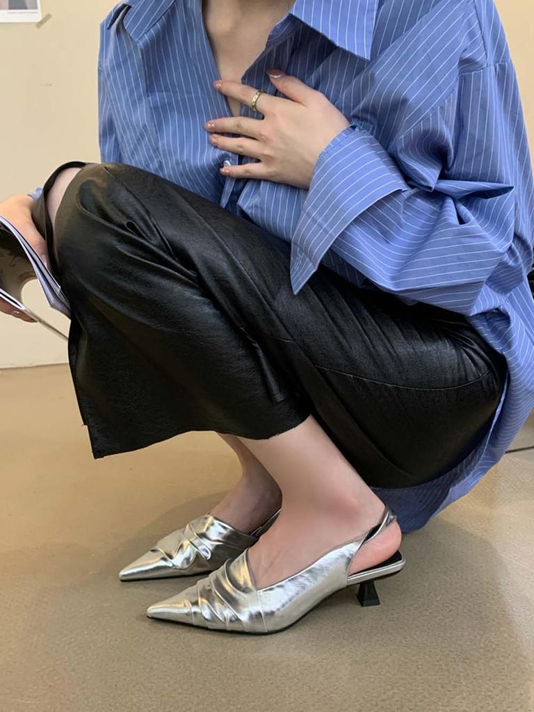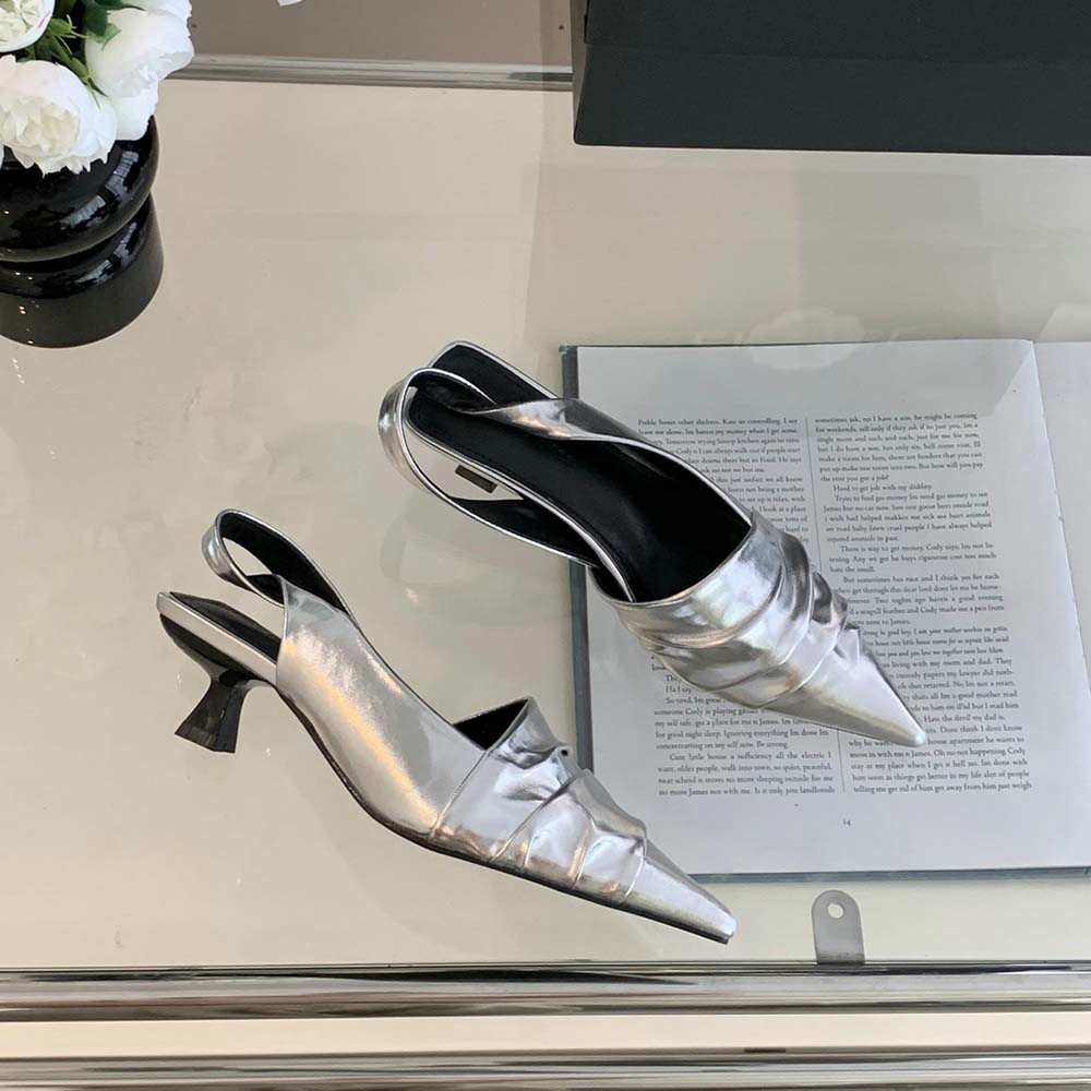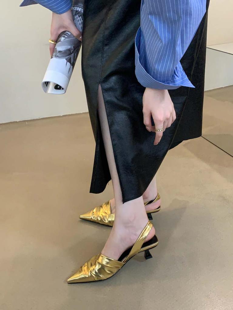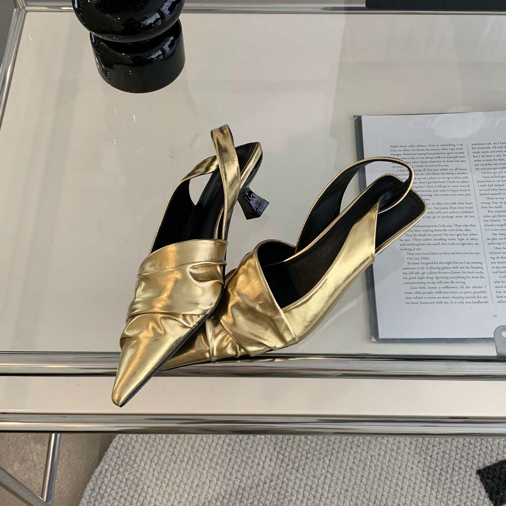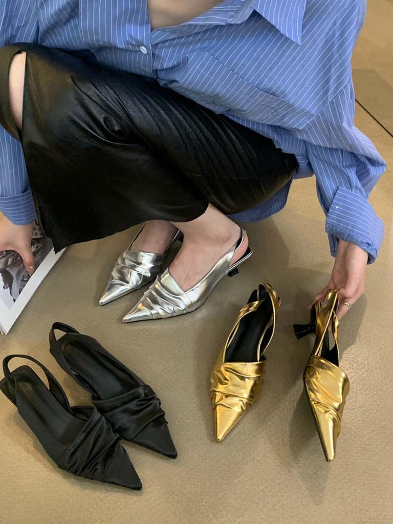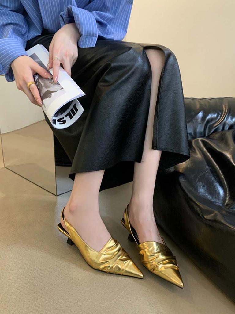 Модные сексуальные женские босоножки с острым носком, летние шлепанцы, тонкие туфли на среднем каблуке, черные, золотые, серебряные, с ремешком сзади, туфли-лодочки для вечеринок, размер 35-39