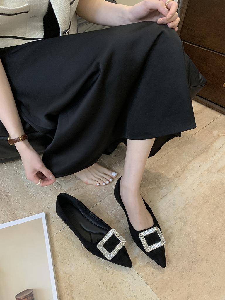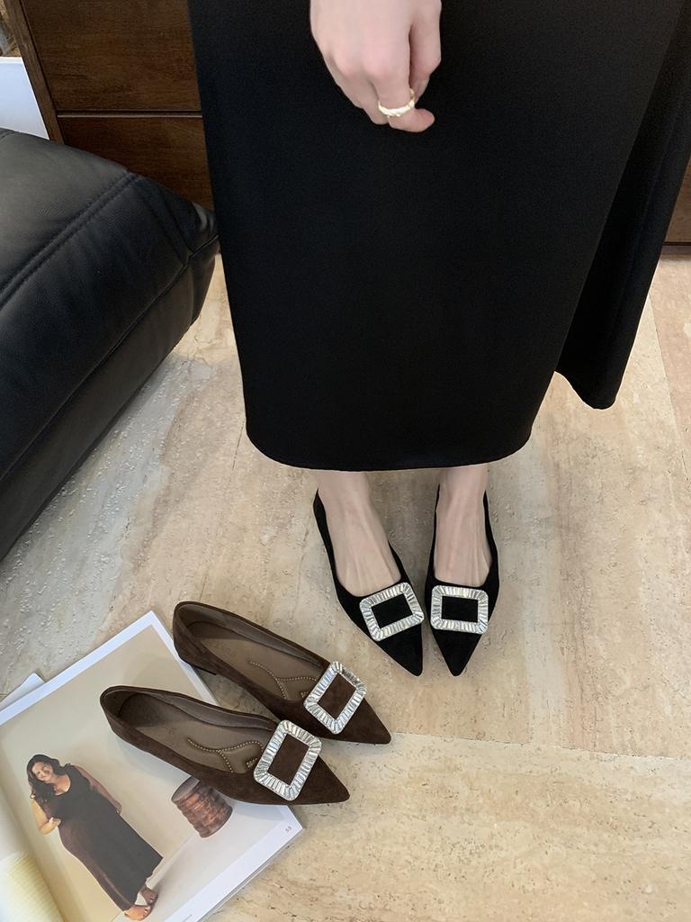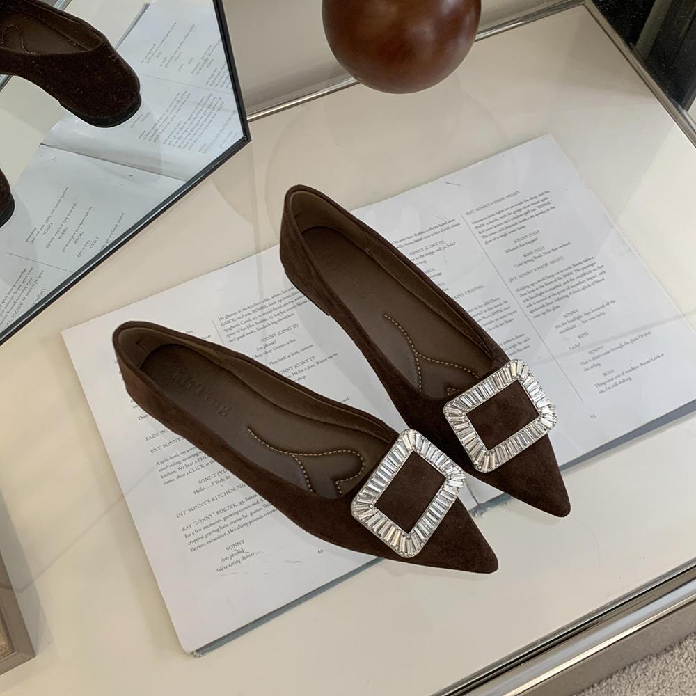 Мода остроносые женские лоферы модные уличные туфли мюли туфли на низком плоском каблуке со стразами пряжка коричневые черные осенне-зимние лоферы мюли