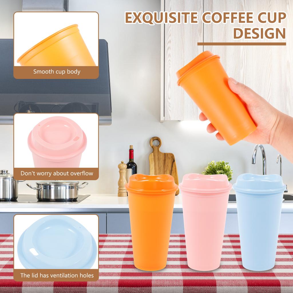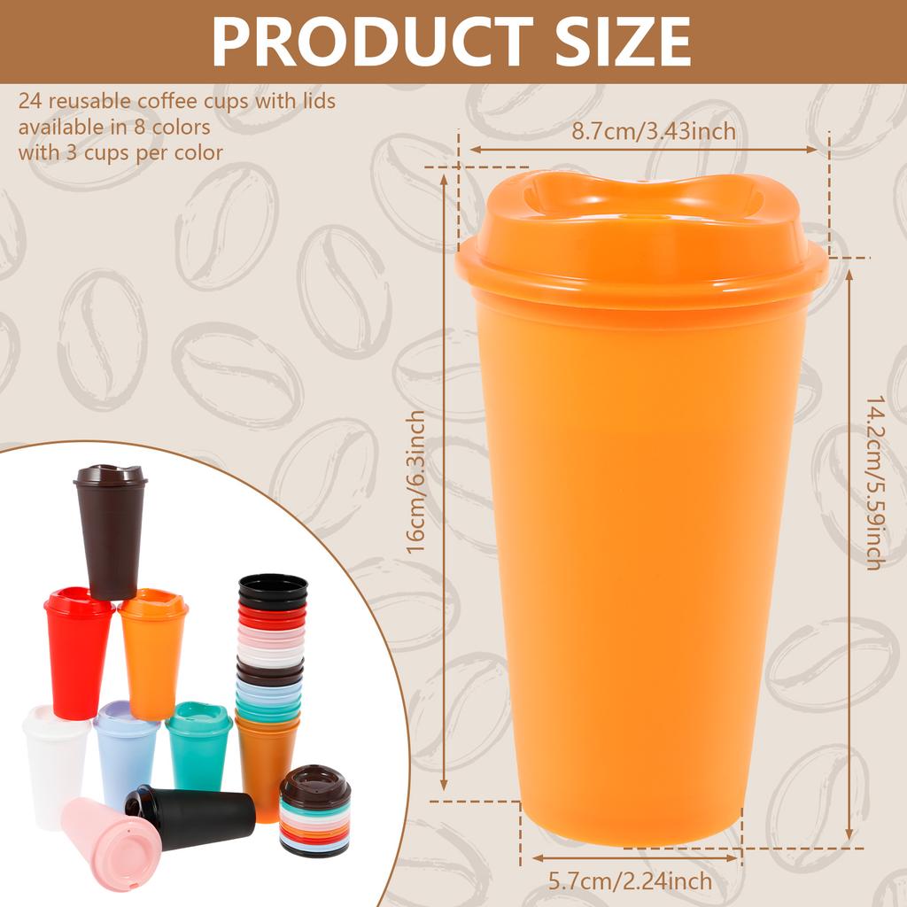 24 кофейных стакана с крышками 16 унций Стакан для кофе с крышками на вынос Многоразовые пластиковые стаканы для холодного американо, напитков, сока или 10 соломинок