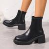 Мода Модные толстые высокие каблуки ботильоны женские 2024 осень боковая молния PU кожаные ботинки женские большие размеры черные толстые каблуки ботильоны