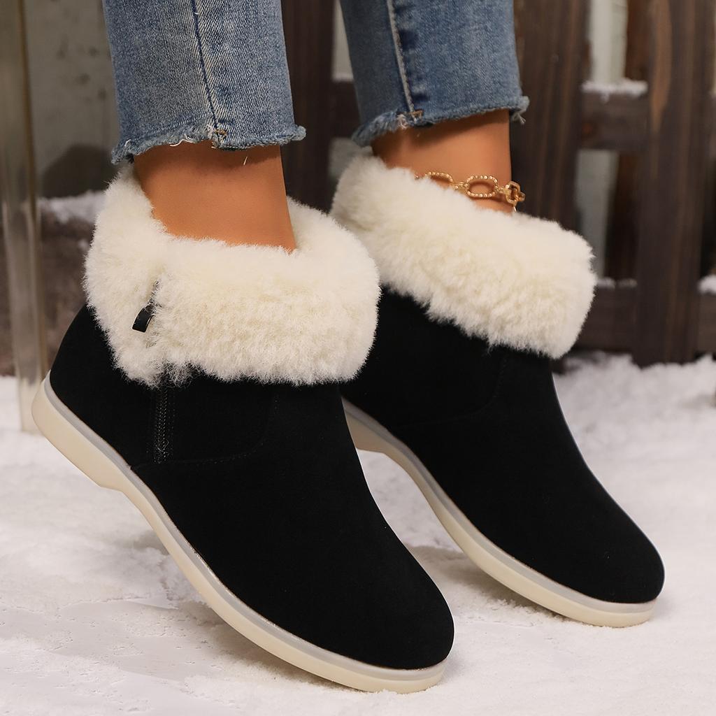 Модные однотонные пушистые зимние сапоги из искусственного меха для женщин, плоская мягкая подошва, толстые плюшевые теплые зимние ботинки для женщин, нескользящие удобные ботильоны