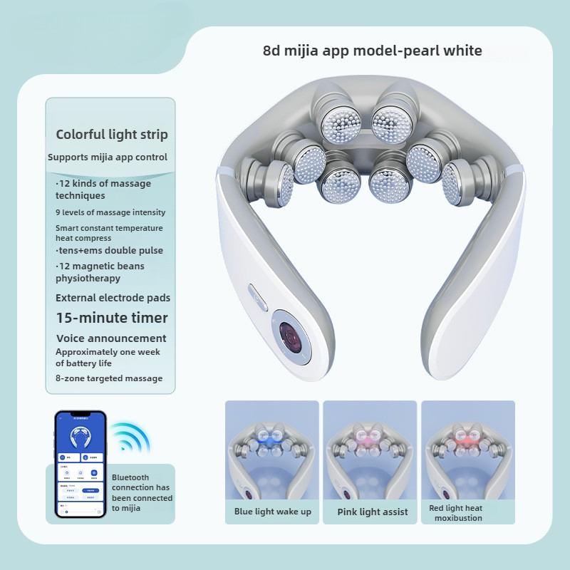 8D U-образный электрический импульсный протектор для шеи для домашнего использования, подключаемый к мобильному приложению, электрический массажер для шейного отдела позвоночника для комфорта и расслабления