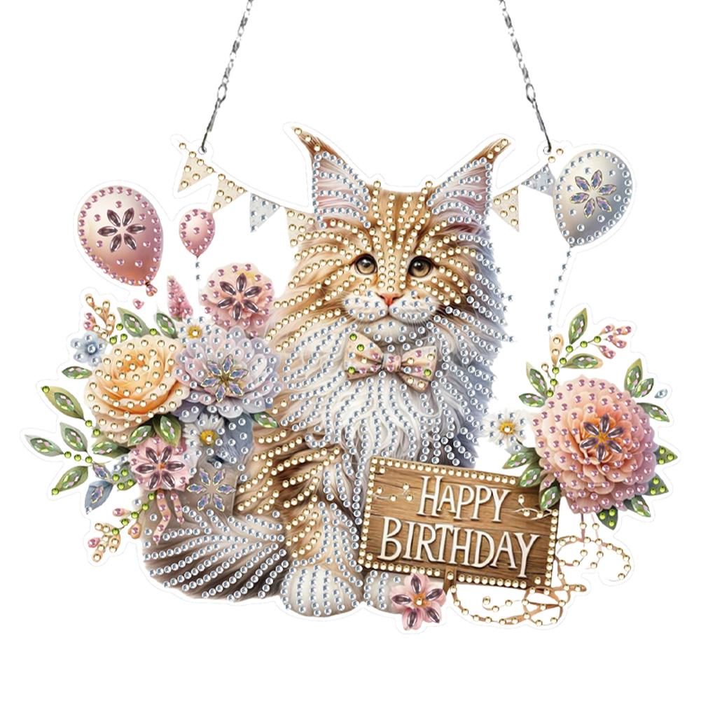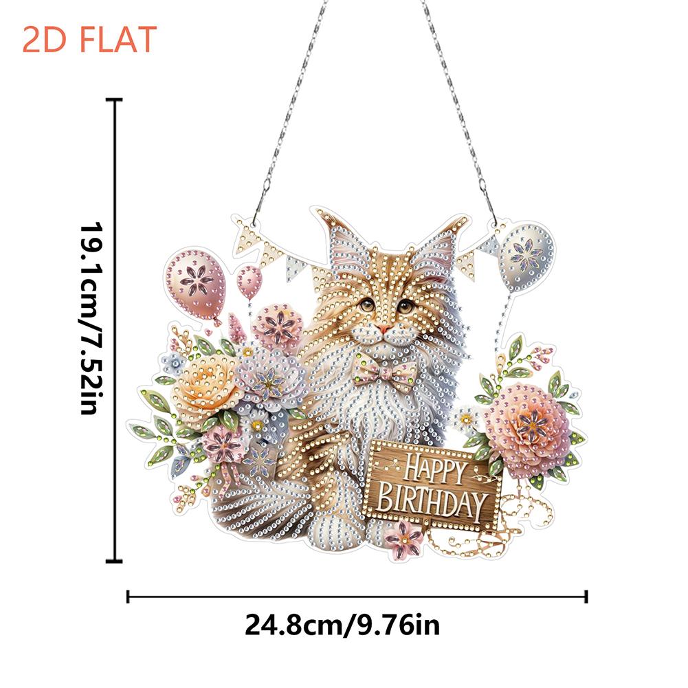 2D Flat DIY Diamond Art Pendant Window Hanging Art for Home Decor (Happy Cat)