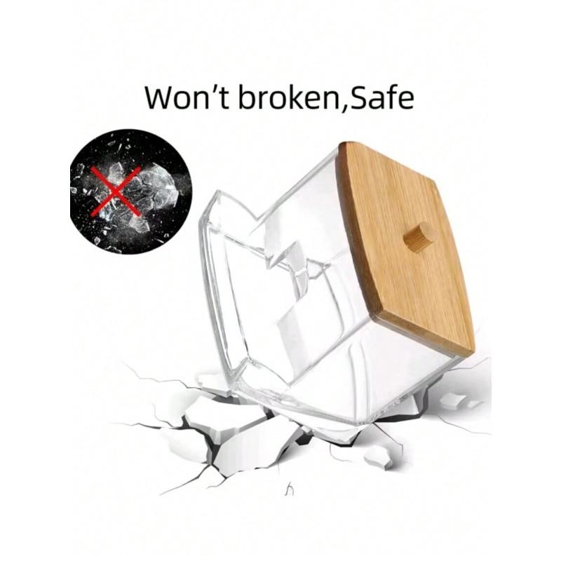 1. Акриловый держатель для ватных палочек и бамбуковая крышка Прозрачный контейнер для хранения ватных палочек Держатель для ушей, Хранение зубочисток, Декорация