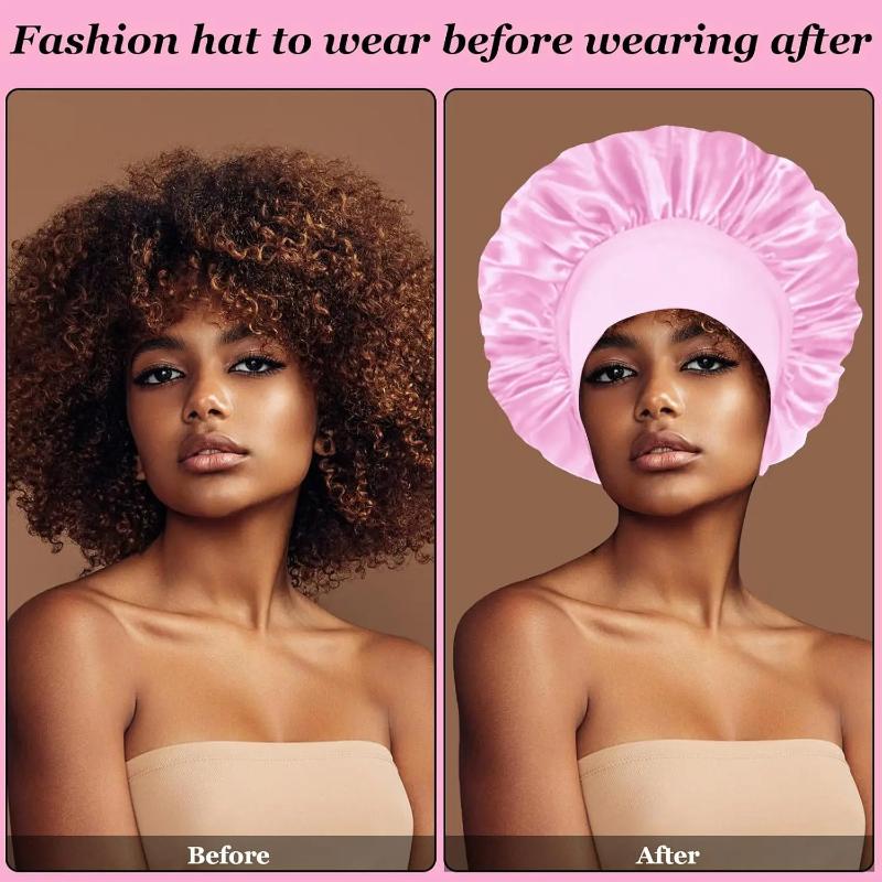 Pure Silk Satin Sleep Bonnet - Wide Band Hair Protection for Curly/Natural Hair, Mulberry Silk Cap for Night&Shower Use (Unisex)