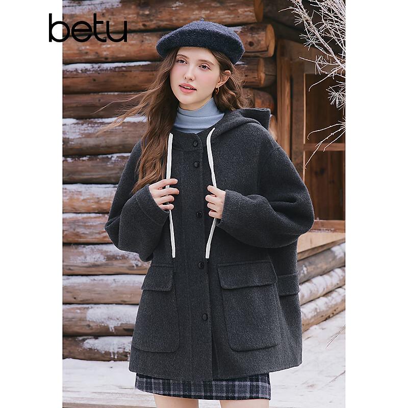 BETU Women's Mid-length Hooded Wool Blend Overcoat