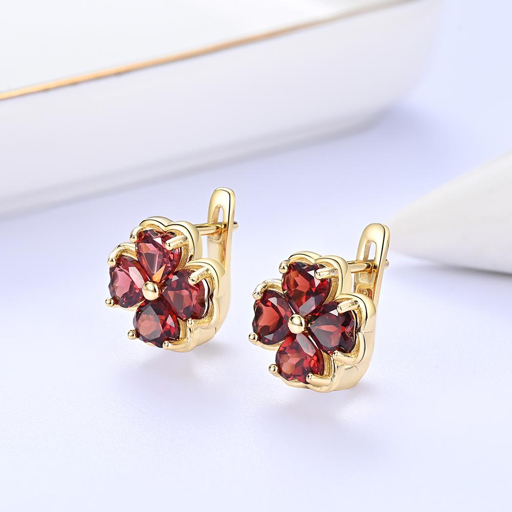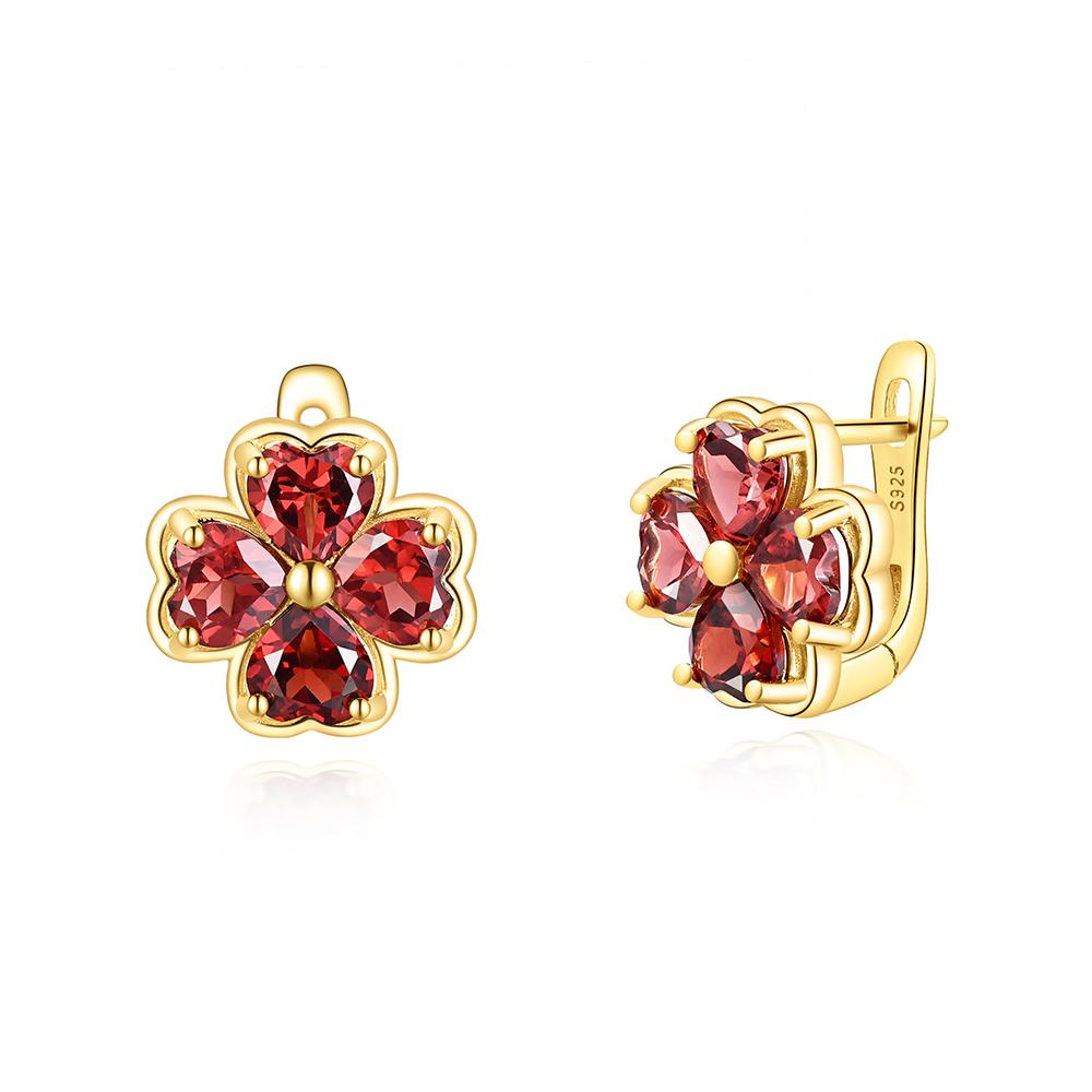 Элегантные серьги из стерлингового серебра 925 пробы с натуральным гранатом/топазом цвета «небесная лазурь», дизайн «четырехлистный клевер», изысканные украшения для женщин, подарки на день рождения