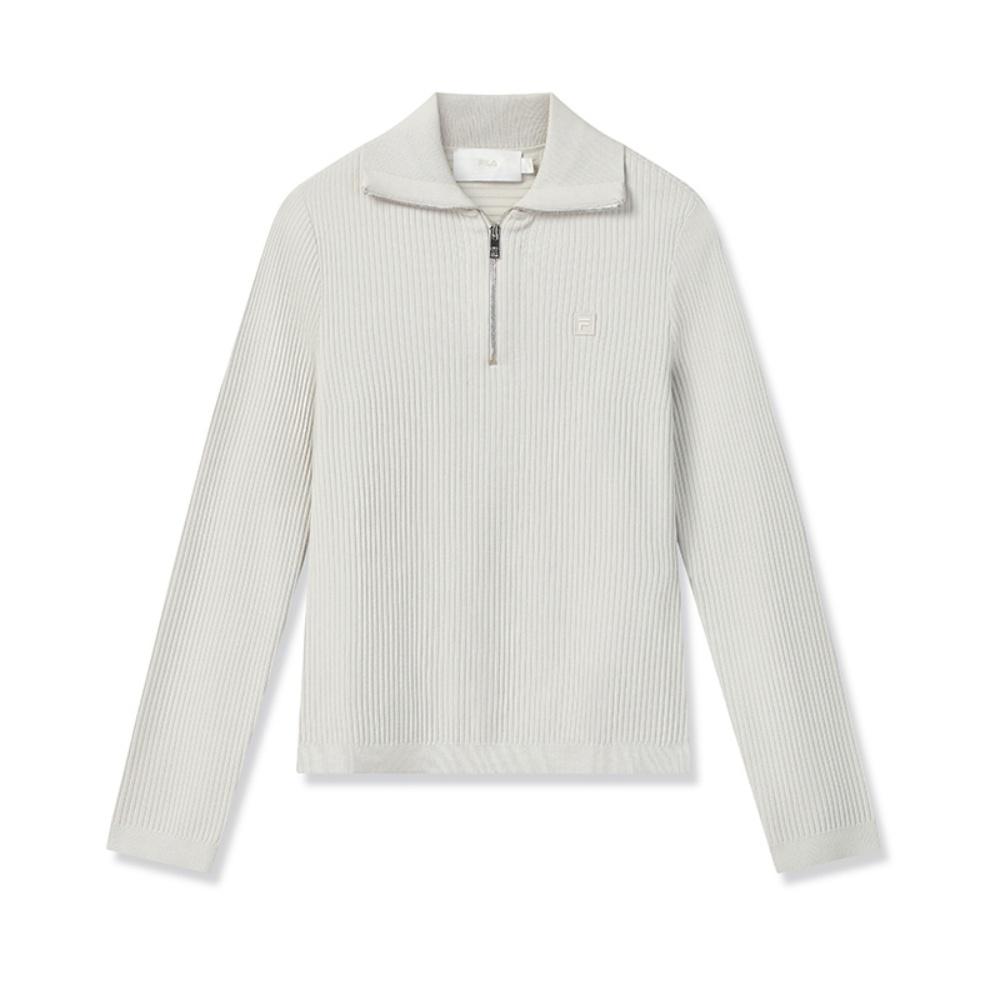 Fila Серия Милано Простой Модный Классический Универсальный Мягкий Удобный Теплый С длинным рукавом Приталенный Вязаный свитер Женские топы Светло-серый Кремовый F11W545403FIV