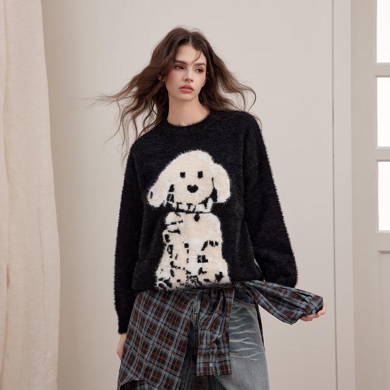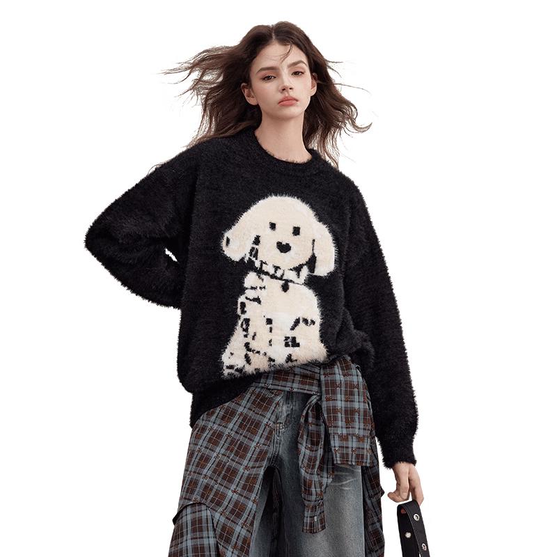 unifree Контрастный свитер-пуловер свободного кроя с узором собаки