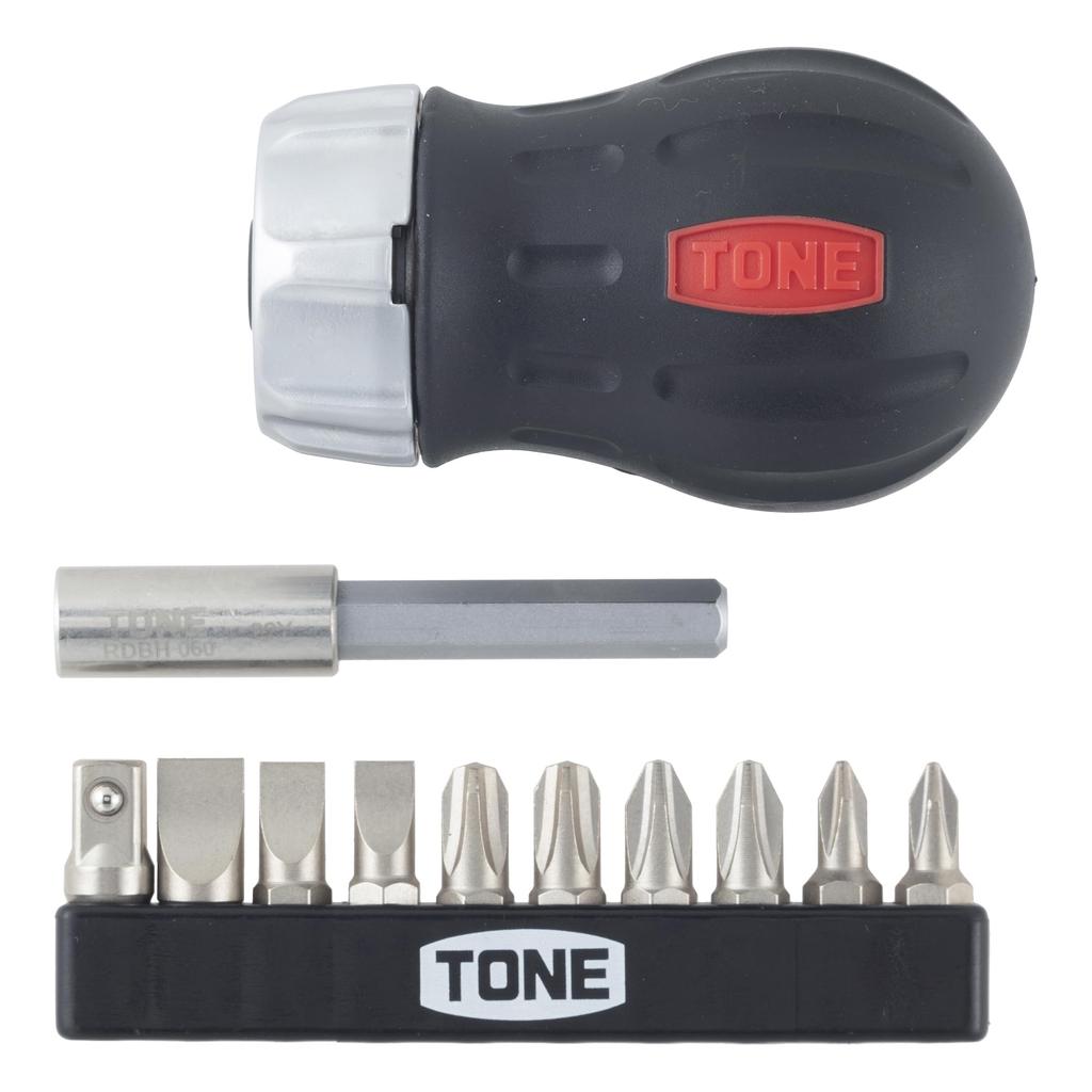 Tone Ratchet Stubby Driver Set RSD10S with Bit Inserts Set & 6.35mm (1/4") Black, 12-Piece