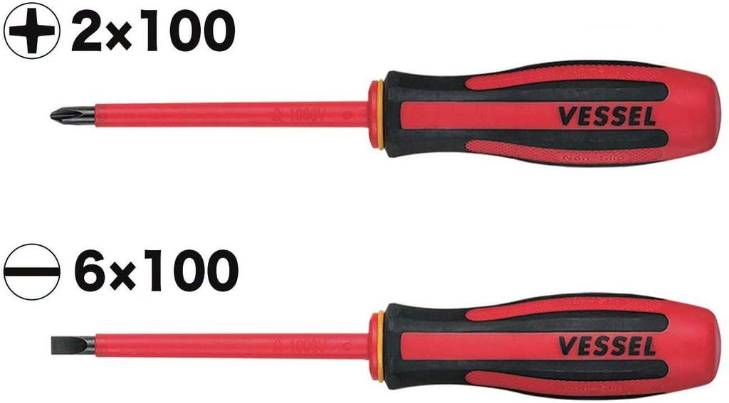 VESSEL Megadora Изолированный набор отверток VDE 9602PS для защиты от поражения электрическим током, 2 шт., Предотвращение, Сертифицированный,