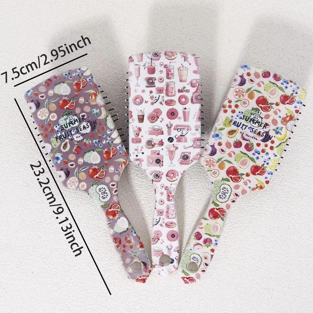 1 шт. фруктовый напиток закуска узор расческа с воздушной подушкой-антистатическая, нейлоновая щетина, эргономичная ручка, Специально для париков из натуральных волос