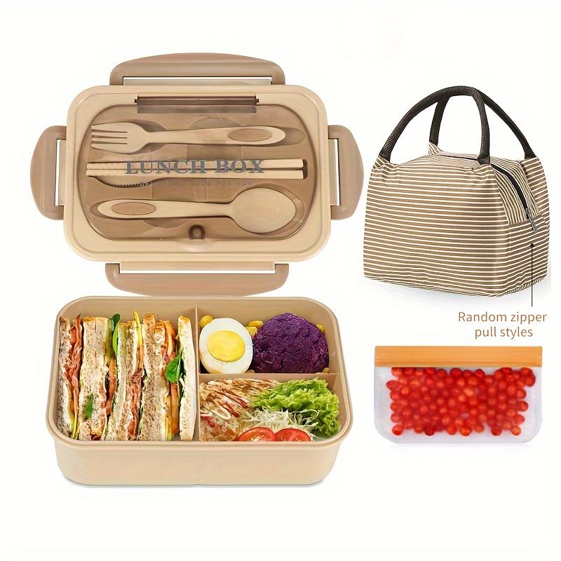 Набор ланч-боксов бенто с сумкой для переноски: Отделения, пригодные для микроволновой печи, прямоугольный дизайн для взрослых, школьные и офисные принадлежности.