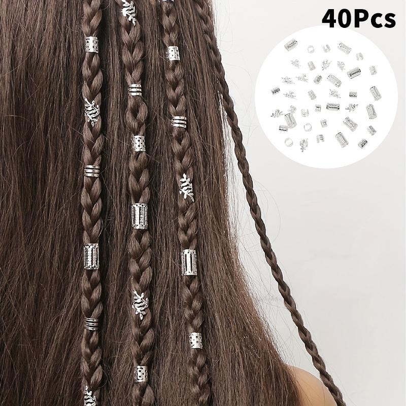 40 шт./набор Винтажные золотые и серебряные полые кольца для волос – Железные заколки для волос в виде манжеты для косичек, Декоративные аксессуары-петли