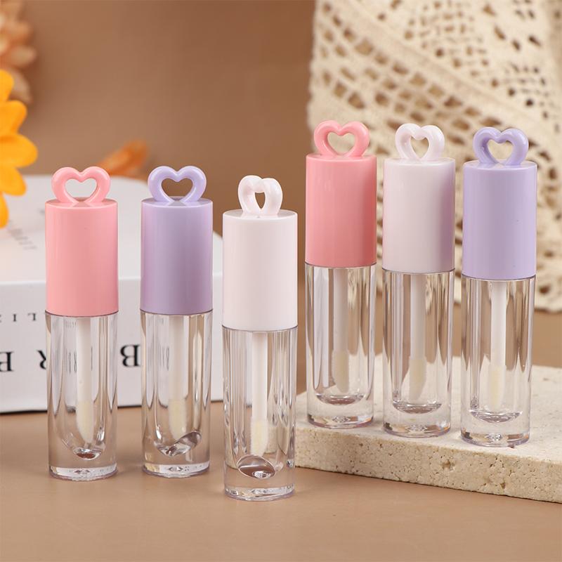 2,5 мл Розовый тюбик для блеска для губ в форме сердца с кисточкой-аппликатором и брелоком – Пустой контейнер для DIY макияжа
