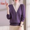 Женский вязаный свитер Xiaofu 2025 Осень/Зима с флисовой подкладкой