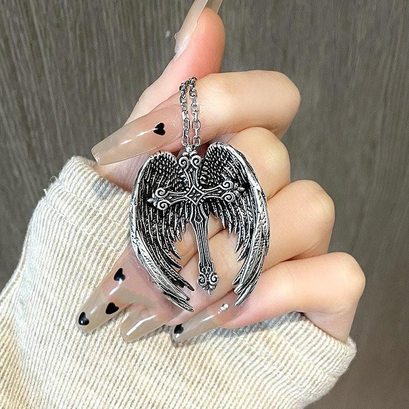 Стильное ожерелье с крестом и крыльями ангела из сплава для модных любителей панка и ретро