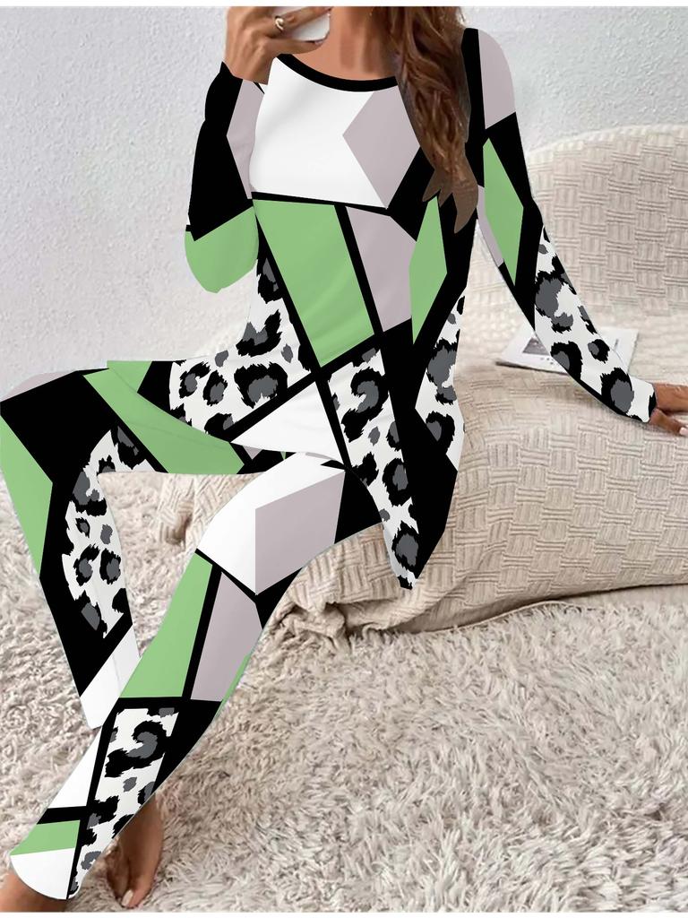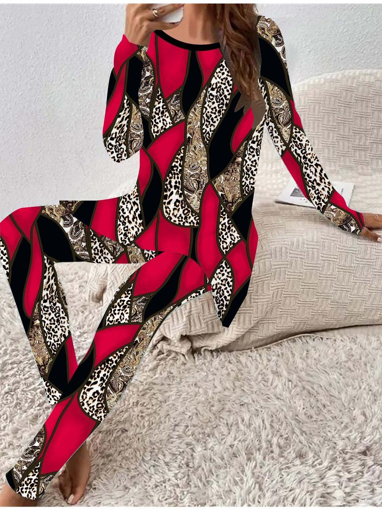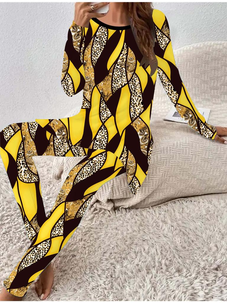 Евро-американская мода 3D с ретро-принтом женский всесезонный комплект из двух предметов: футболка с длинным рукавом + длинные брюки. Идеальный подарок на Новый год и Рождество