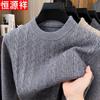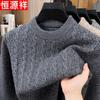 Hengyuanxiang Men's Thickened Cable Knit Wool Blend Round Neck Sweater