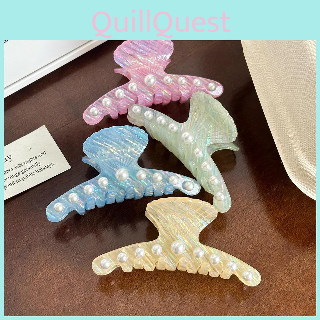 Elegant And Trendy Pearl Accent Acetate Claw Clip For Stylish Women's Hair Accessories