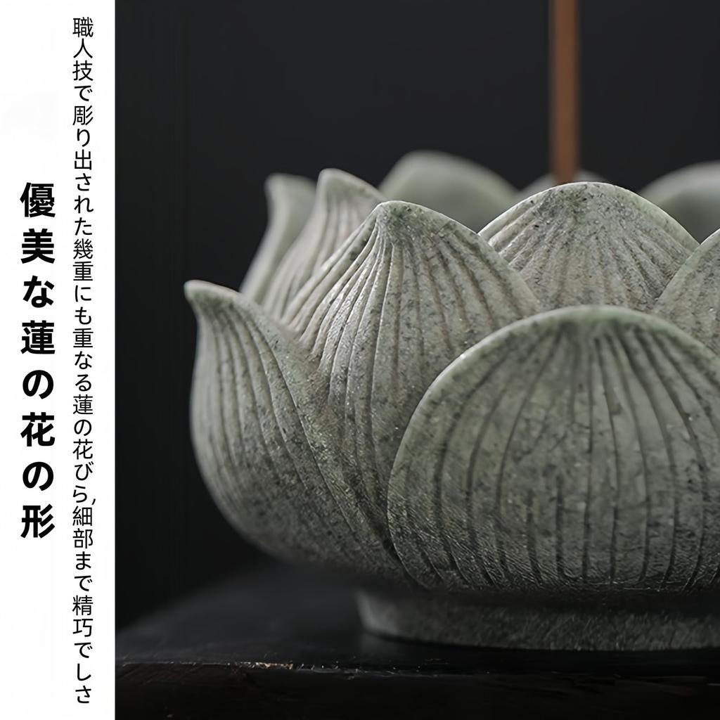 Moruna Ceramic Incense Holder with Lotus Flower Design, Stylish Mini Incense Burner for Buddhist Altars, Japanese-Style Decor (Blue Sand and Stone