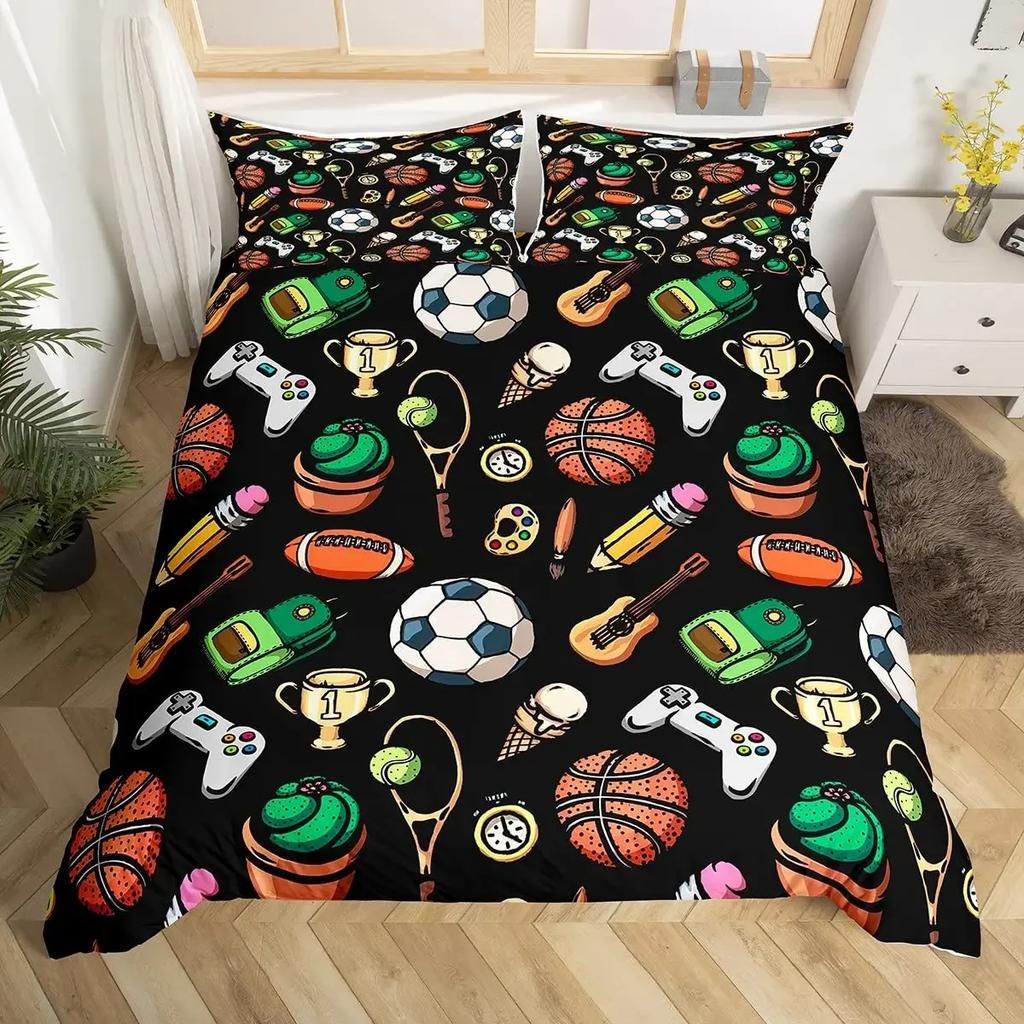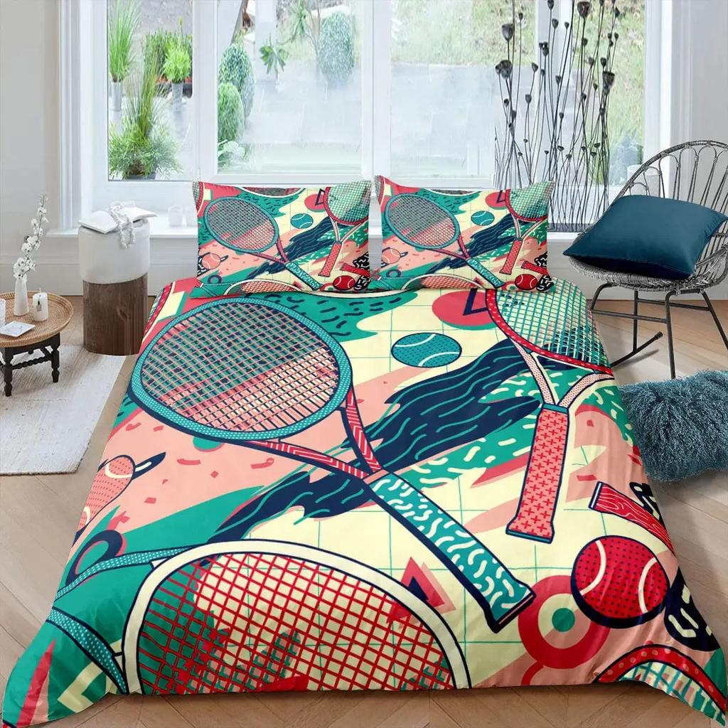 Tennis Ball Sports Game Themed Racket Ball Bedding Set Single Twin Double Queen King Cal King Size Bed Linen Set