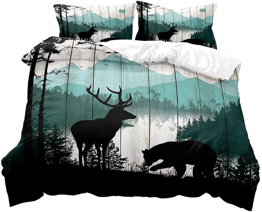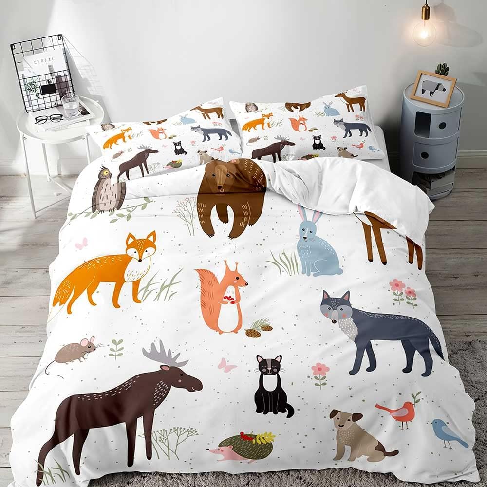 Мультяшные лесные животные пододеяльник размер Квин-сайз Кинг-сайз Двуспальная кровать Детское постельное белье для мальчика Медведь Олень Лиса Кролик Кантри Коттедж 3 шт