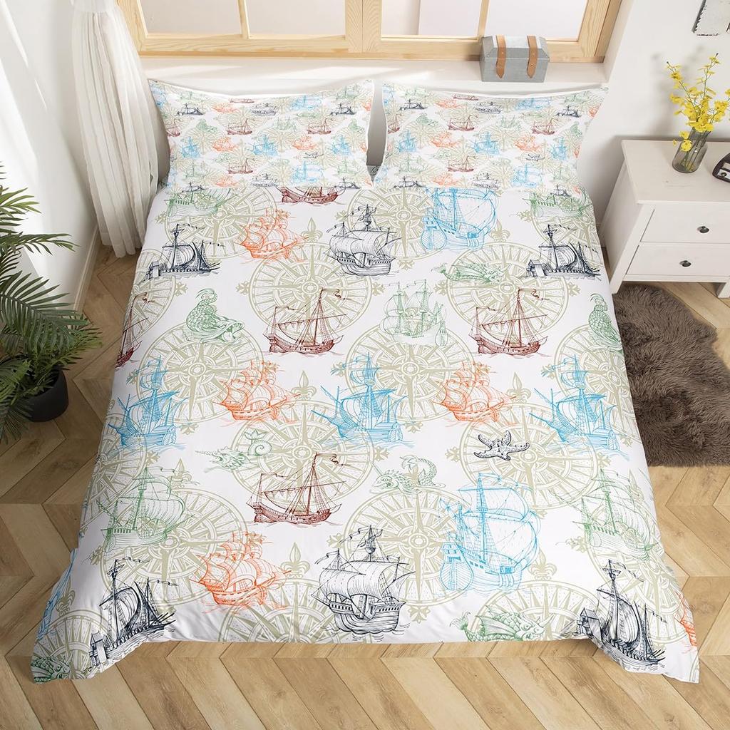 Ocean Sea Beach Duvet Cover Bedding Set Queen Set Size For Kids Girls Boys Adults Room Decor Sketch Quilt Printing Cover 3 Pcs