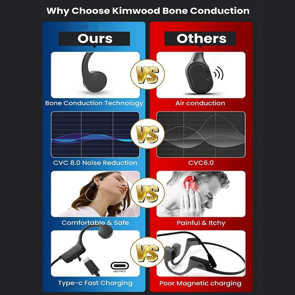 AI Advanced Open Ear Headphones Wireless Bone Conduction Technology 20Hr Battery IPX7 Waterproof Sport Headset with Microphone