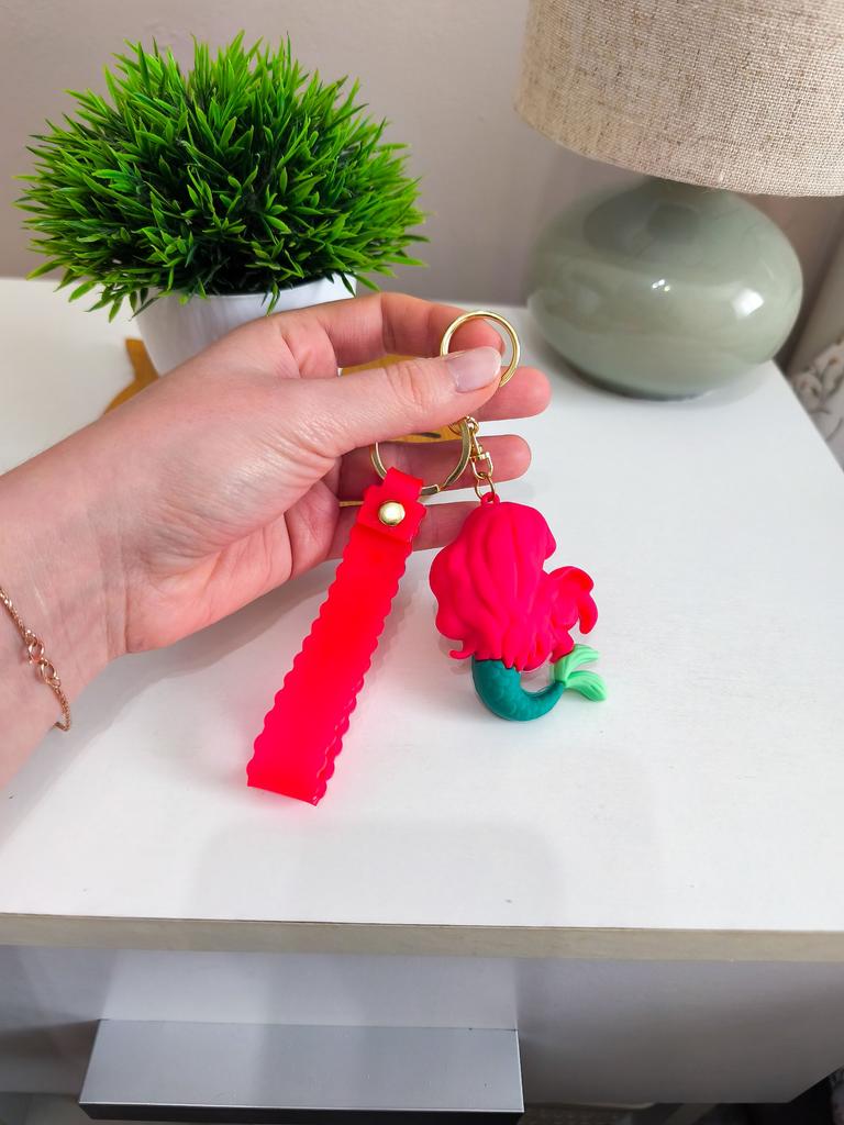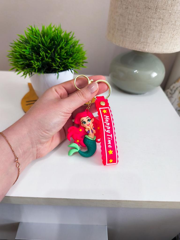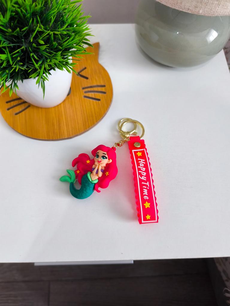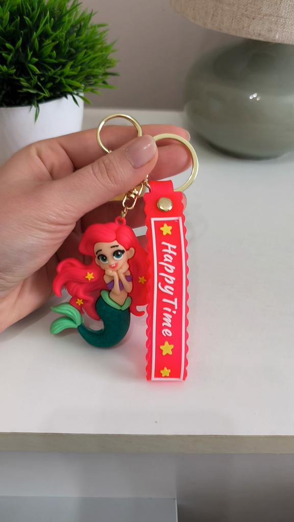 Яркий и позитивный аксессуар, который отлично подойдет для украшения ключей, рюкзака или сумки. 🔸Дизайн: Фигурка выполнена в стиле классической Ариэль с яркими волосами и зеленым хвостом. 🔸Детали: В комплекте идет стильный ремешок с надписью «Happy Time», украшенный звездочками. 🔸Фурнитура: Надежное металлическое кольцо и карабин золотистого цвета позволяют легко закрепить брелок на любой поверхности. 🔸Материал: Похоже на мягкий ПВХ — такие изделия долговечны, приятны на ощупь и не боятся влаги. Итог: Милый и недорогой подарок, который добавит яркий акцент в повседневный образ.