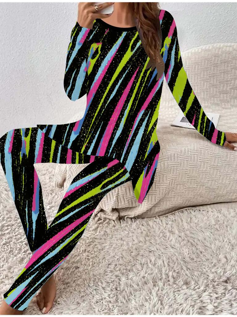 Евро-американская мода 3D-принт Женская футболка с длинным рукавом на все сезоны + Длинные брюки Набор из двух предметов. Идеальный подарок на Новый год и Рождество