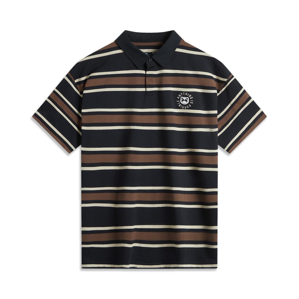 Li Ning Sports Lifestyle Series Logo Stripe Удобная дышащая свободная рубашка поло с коротким рукавом Мужские рубашки поло APLU921-1
